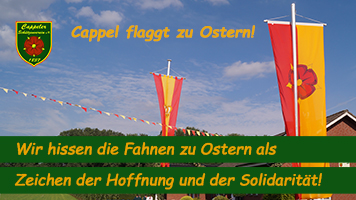 Die Einschnitte in unser Vereinsleben sind schmerzlich, aber im Interesse aller unumgänglich. Wir danken allen, die sich in dieser schwierigen Zeit für die Gesundheit und für das allgemeine Wohl einsetzen und dafür arbeiten. Der Cappeler Schützenverein hat diesen Dank schon mit der Beflaggung über Ostern zum Ausdruck gebracht. Gemeinsam werden wir auch dieses Jahr überstehen und dann mit neuem Schwung in die Schützenfestsaison 2021 starten.“