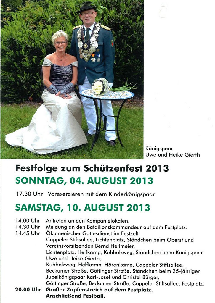 auch 2013 wird der Verein diese Absicht mit seinem Schützenfest vom 10.-13.