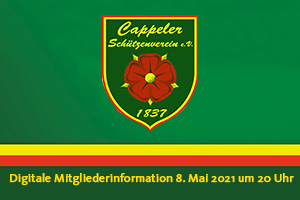 In den 184 Jahren seines Bestehens hat der Cappeler Schützenverein zahlreiche Veränderungen erfahren müssen, die häufig äußeren Umständen geschuldet waren. So auch jetzt in der Pandemiesituation: Die traditionelle Frühjahrsversammlung fand nicht wie gewohnt im Schützenhaus statt, sondern die Cappeler Schützen hatten sich online zur Versammlung getroffen. Knapp 100 Schützen waren der Einladung des Vorstandes zur „Informationsveranstaltung“ gefolgt, ein deutlicher Hinweis darauf, dass der Bedarf an Information, aber auch der Wunsch nach Austausch mit den Schützenbrüdern ungebrochen ist.